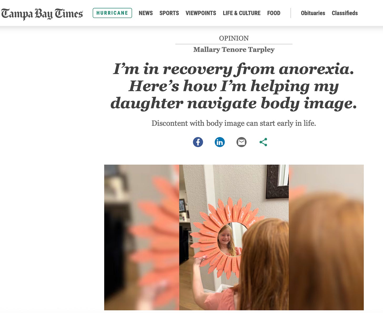 “I’m in recovery from anorexia. Here’s how I’m helping my daughter navigate body image,” published in the Tampa Bay Times in March.