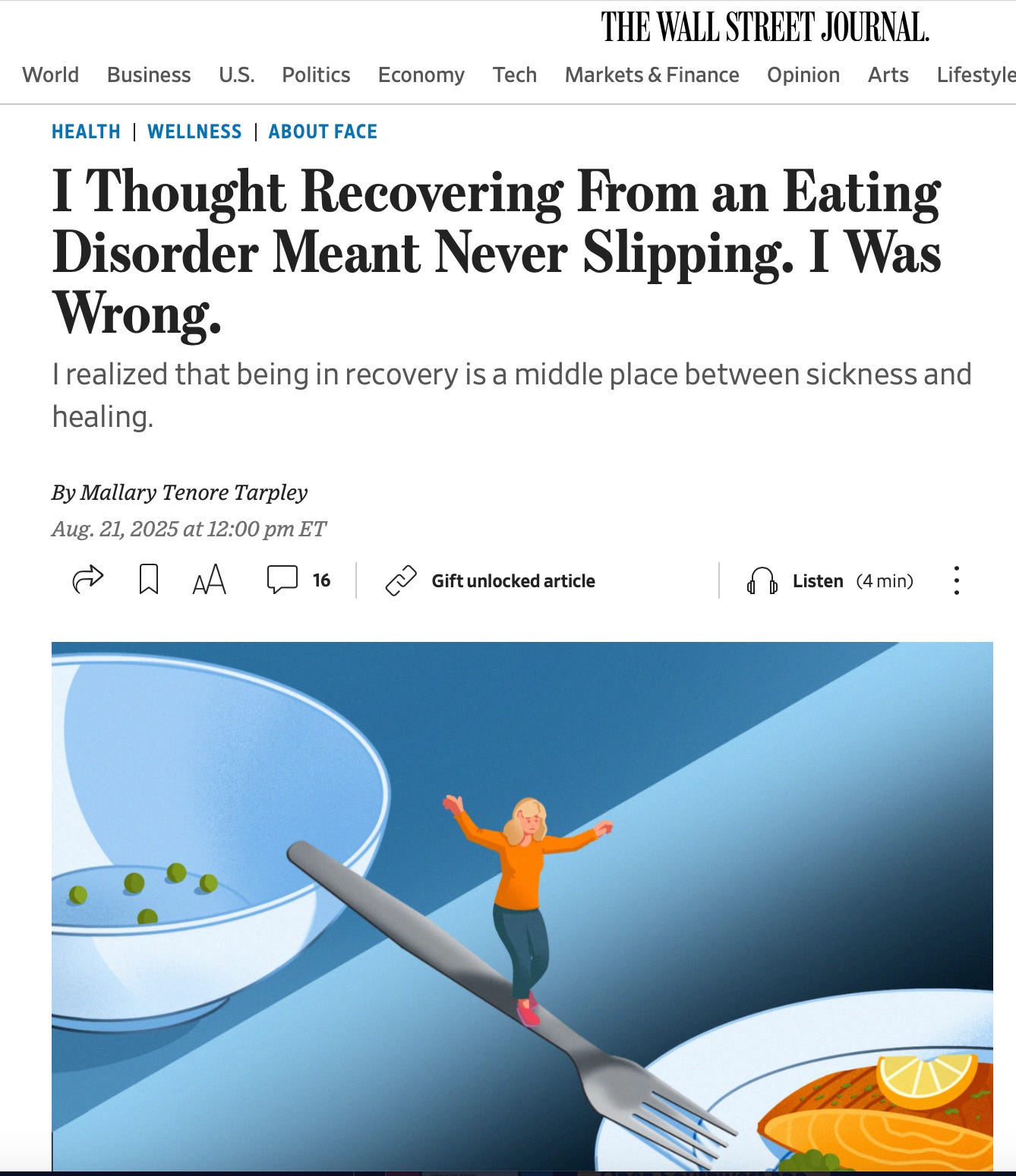 “I thought recovering from an eating disorder meant never slipping. I was wrong,” published in The Wall Street Journal in August.