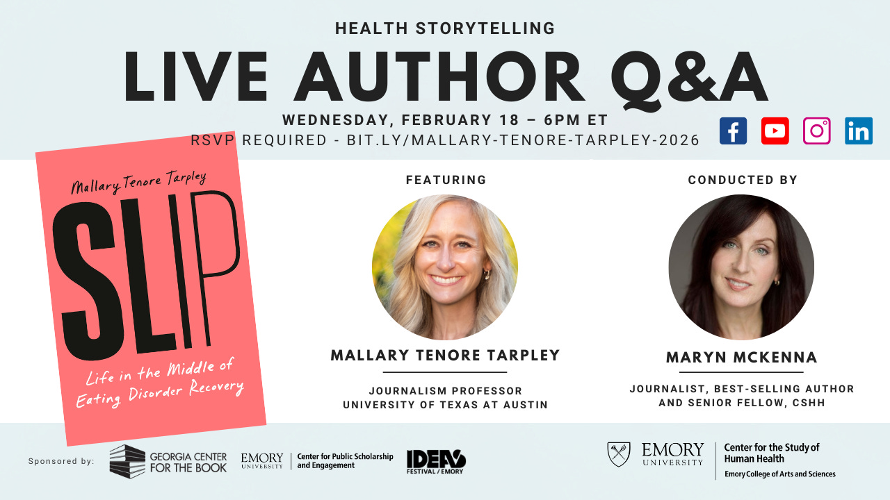 I hope you’ll join me for my next SLIP event — with Emory University’s Center for the Study of Human Health. This virtual event, which is open to all and free to attend, will be held next Wednesday, Feb. 18, at 6 p.m. ET. Find more details, and register, here.